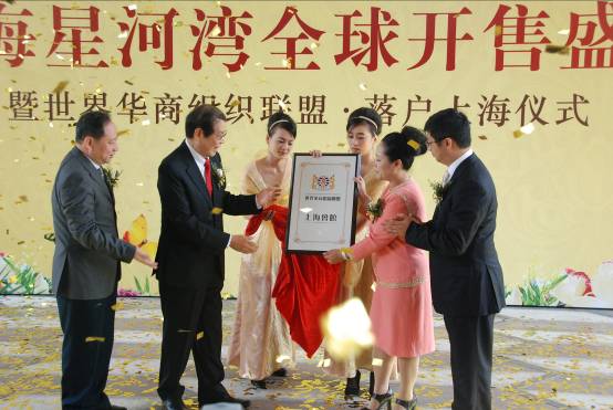 10月10日上午,世界華商組織聯盟上海會館落戶上海星河灣,世界華商組織聯盟執行主席丁楷恩先生、星河灣集團董事副總裁梁上燕等領導為落戶進行了揭牌儀式。
